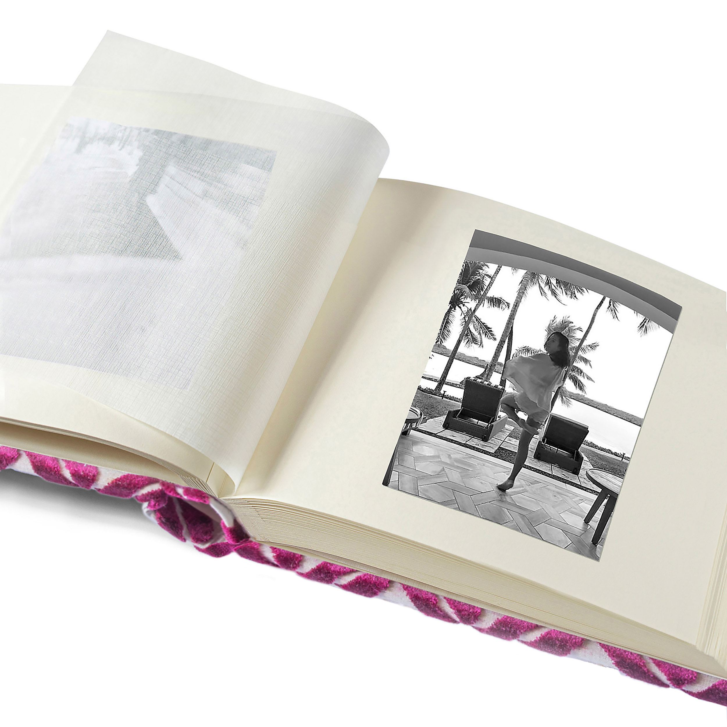 Album portafoto rivestito in velluto intagliato.