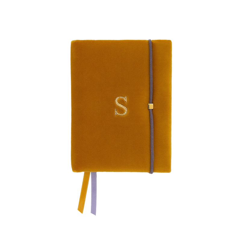 Agenda 12 mesi giornaliera rivestita in velluto con iniziale ricamata.