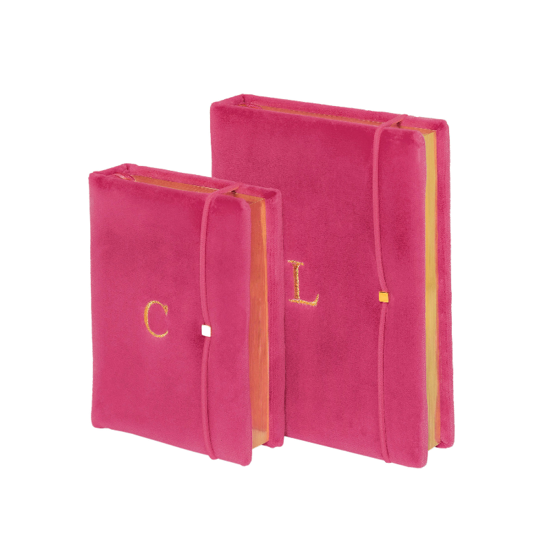 Agenda 12 mesi giornaliera rivestita in velluto con iniziale ricamata.