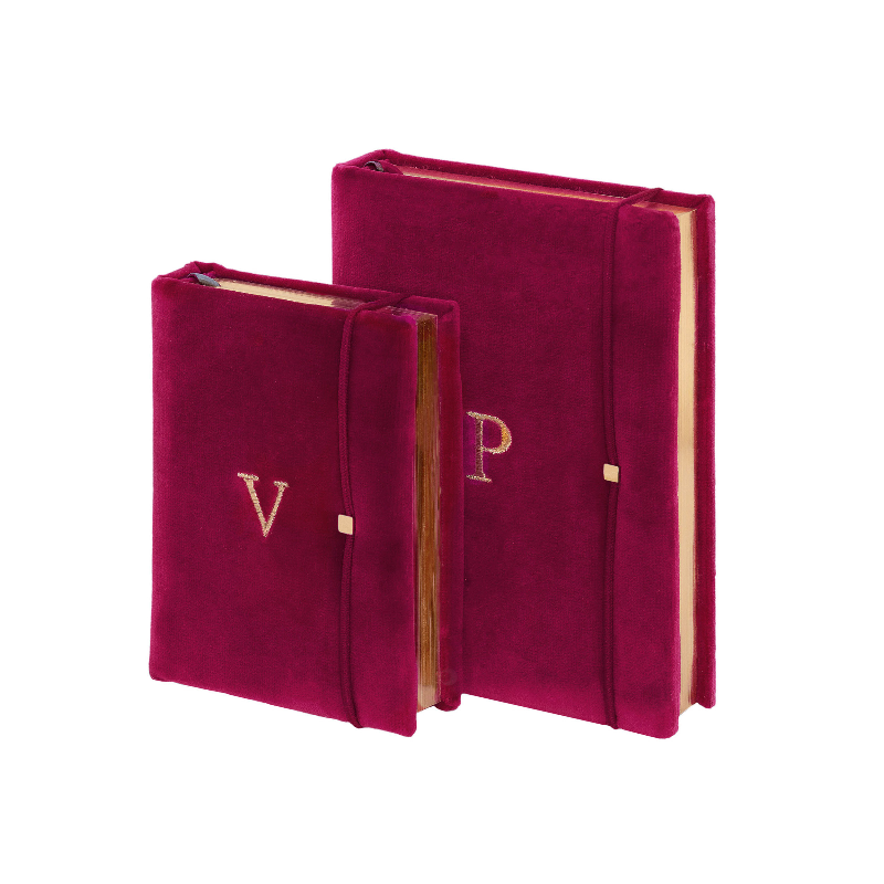 Agenda 12 mesi giornaliera rivestita in velluto con iniziale ricamata.