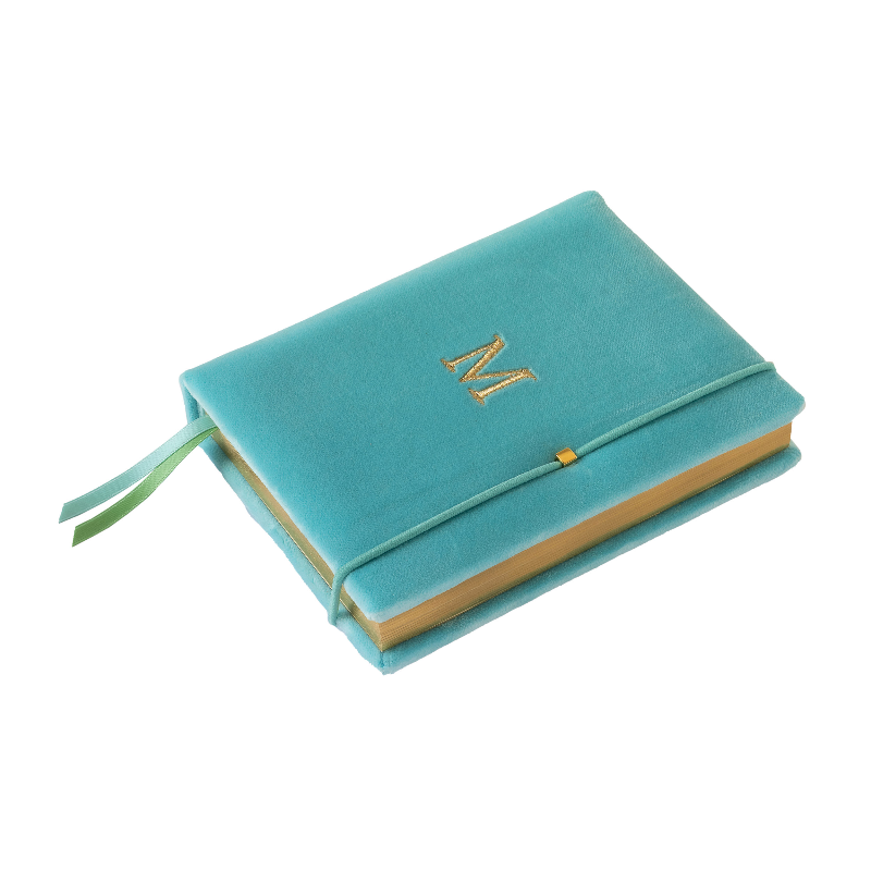 Agenda 12 mesi giornaliera rivestita in velluto con iniziale ricamata.