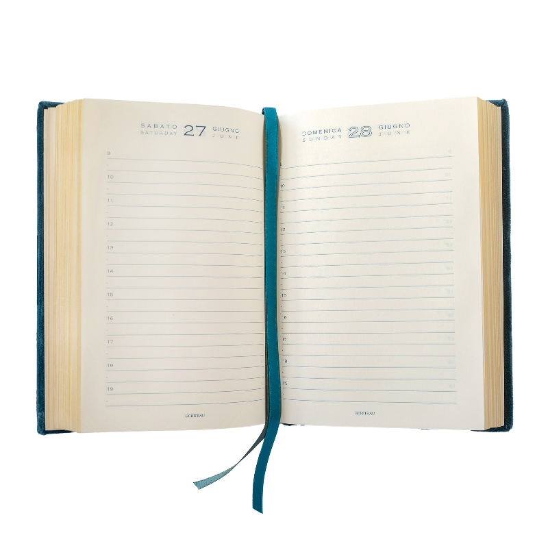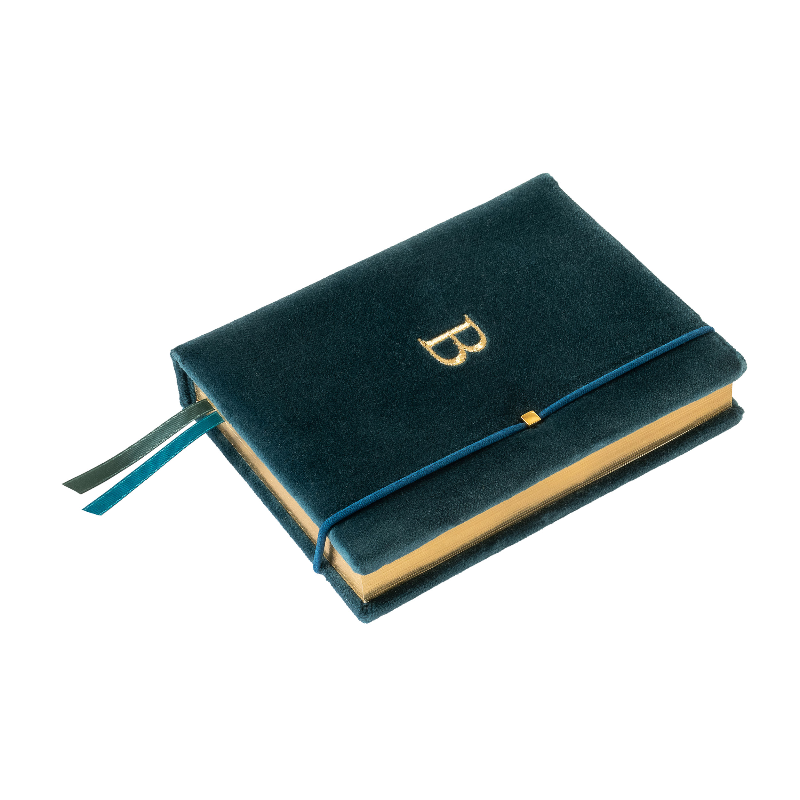 Agenda 12 mesi giornaliera rivestita in velluto con iniziale ricamata.