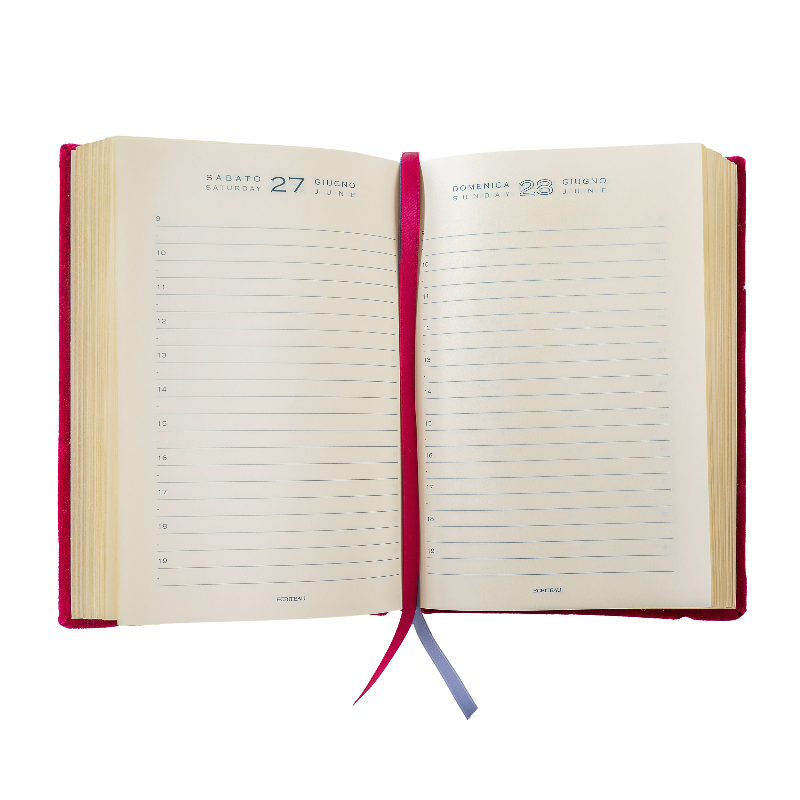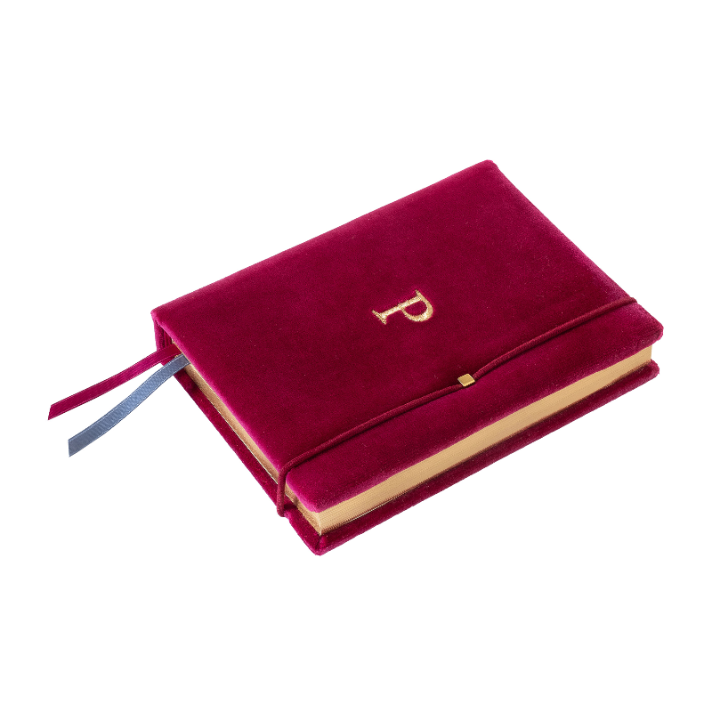 Agenda 12 mesi giornaliera rivestita in velluto con iniziale ricamata.