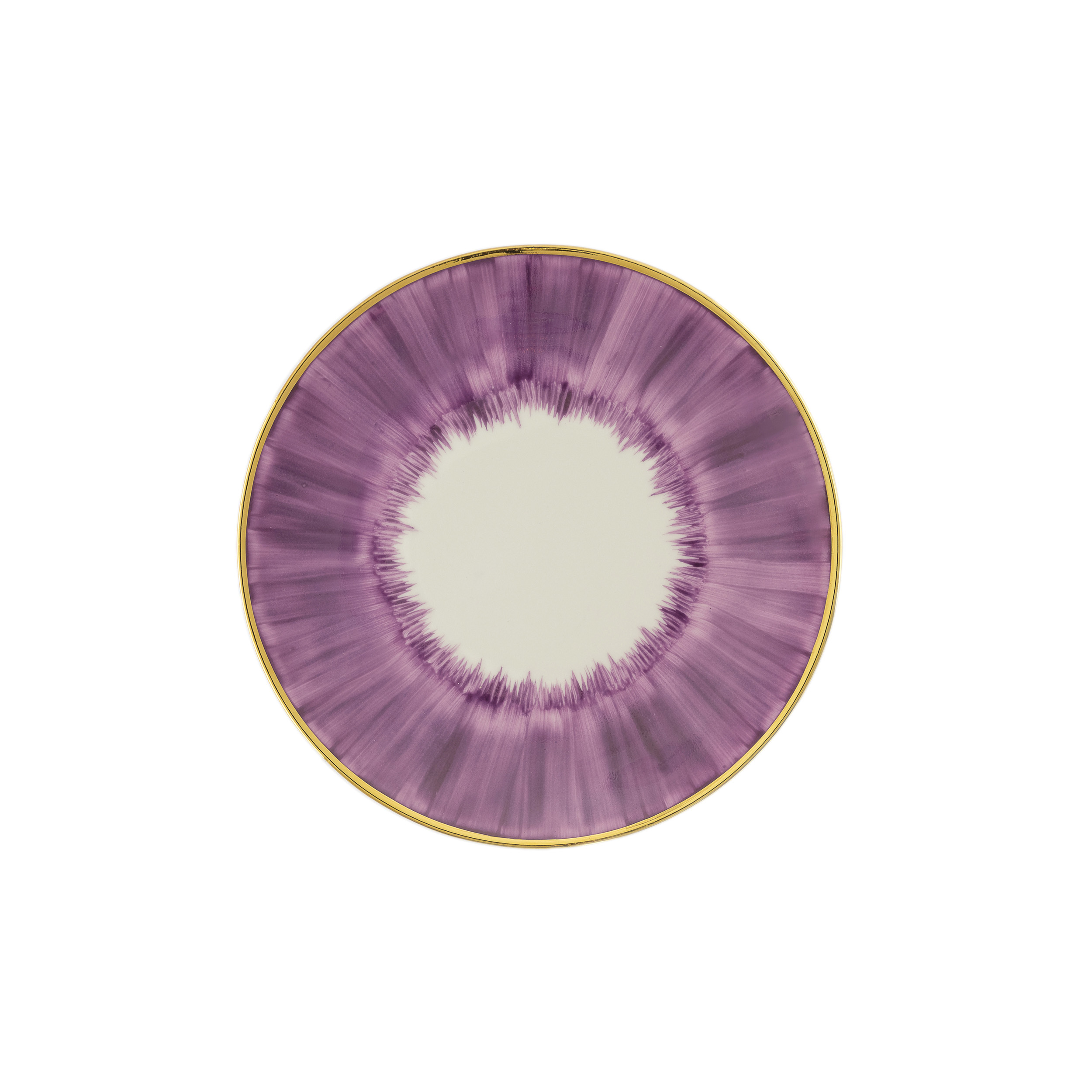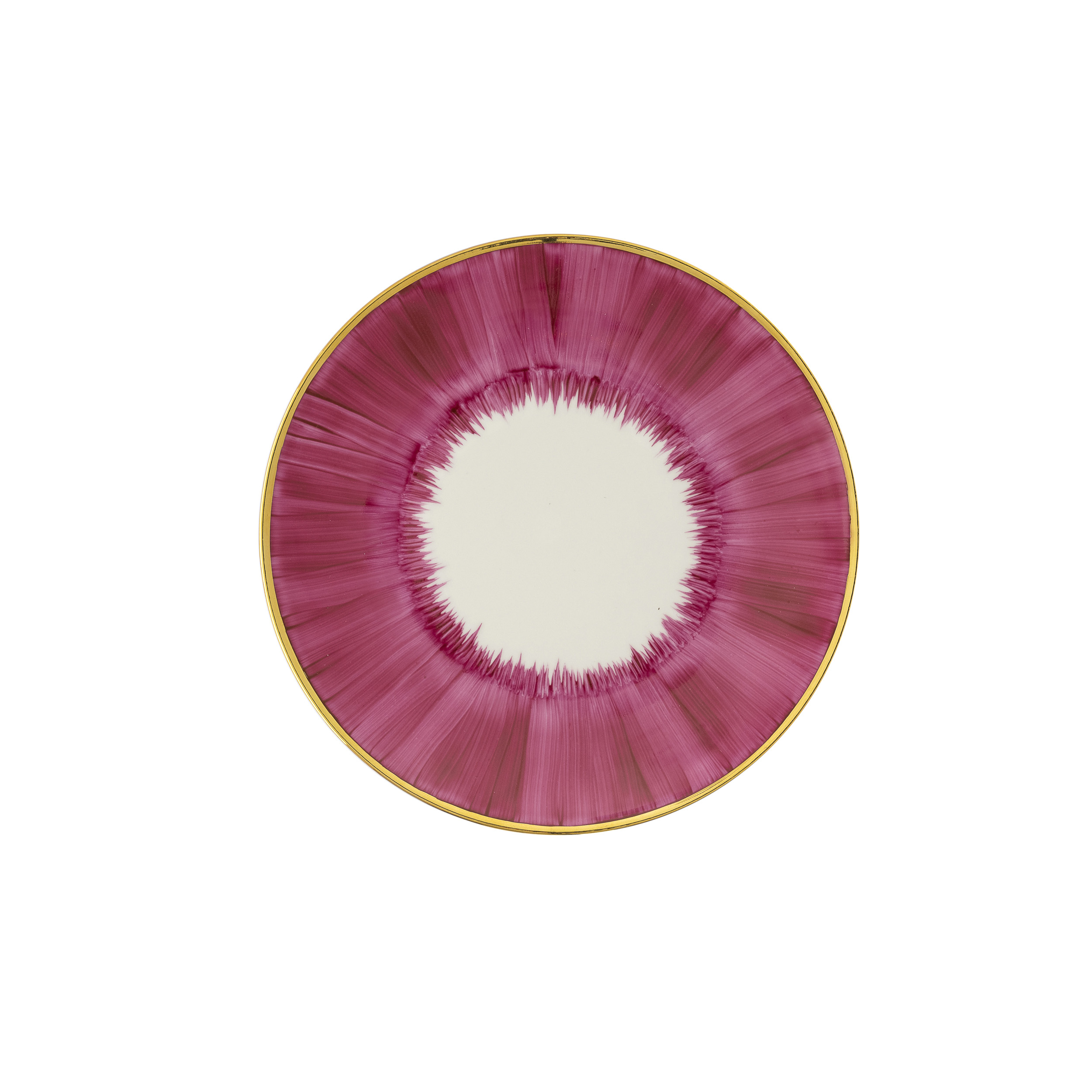 Piatto da dessert in porcellana di Limoges dipinto a mano con bordo in oro zecchino.