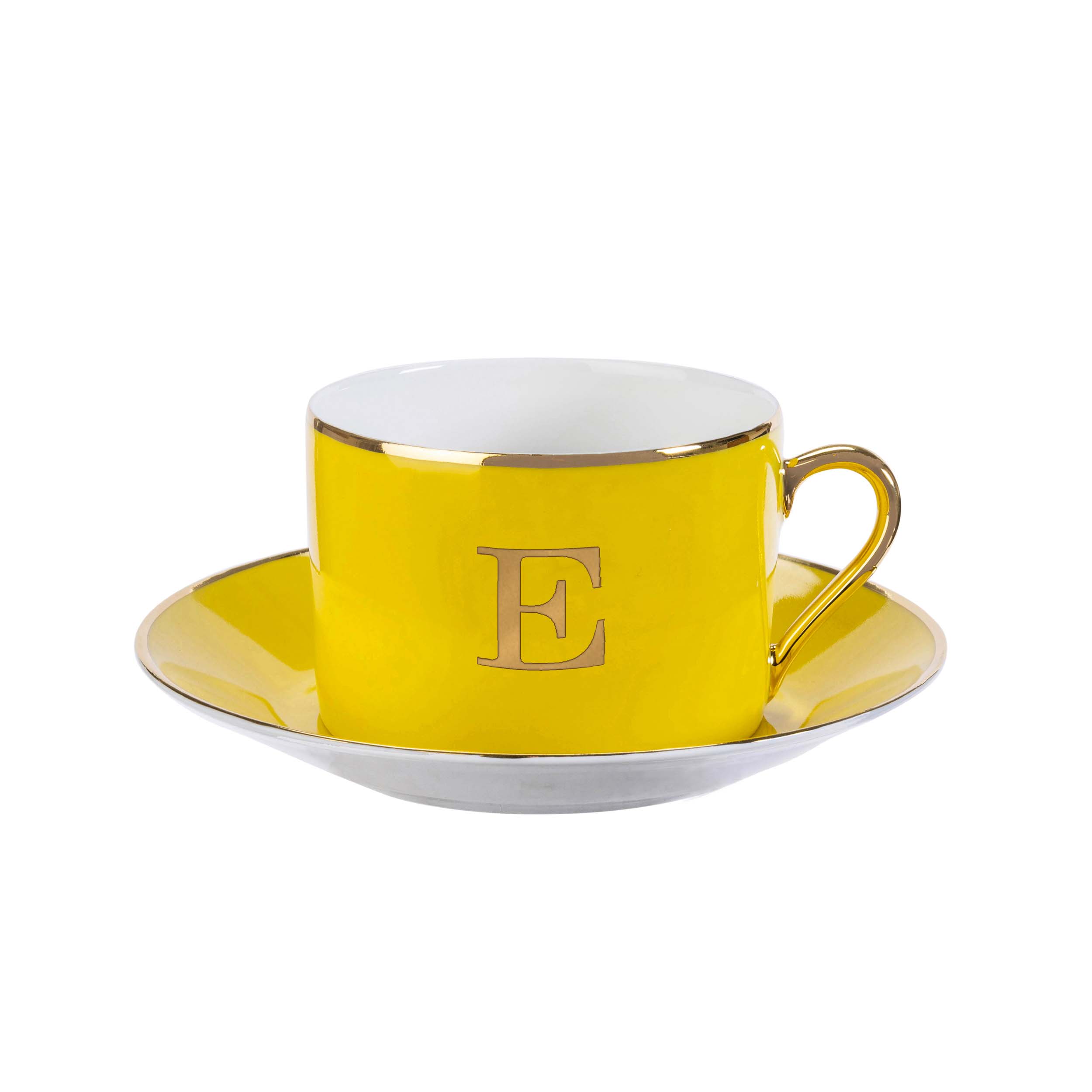 Tazza in porcellana di Limoges decorata a mano con bordo e iniziale in oro zecchino.