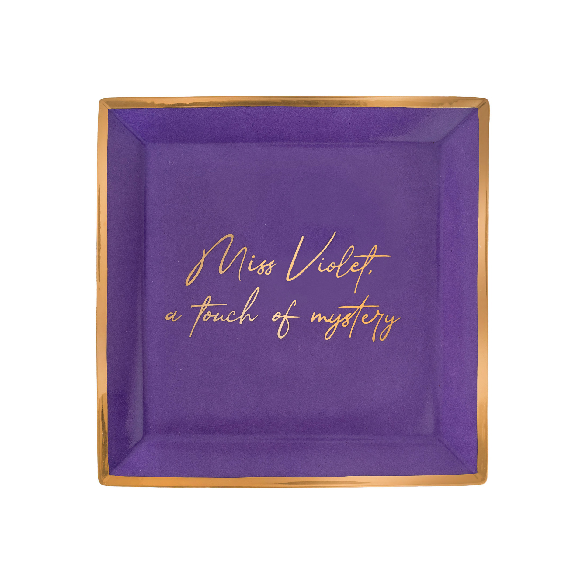 Vassoio in porcellana di Limoges decorato a mano con profilo e scritta in oro 24k.