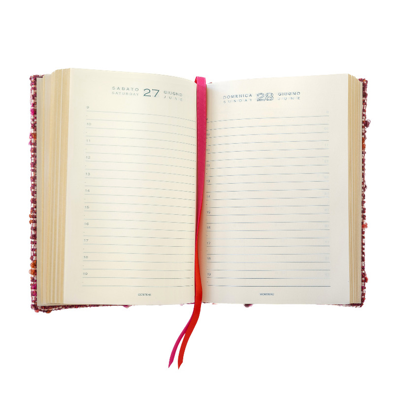 Agenda 12 mesi giornaliera rivestita in velluto fantasia.