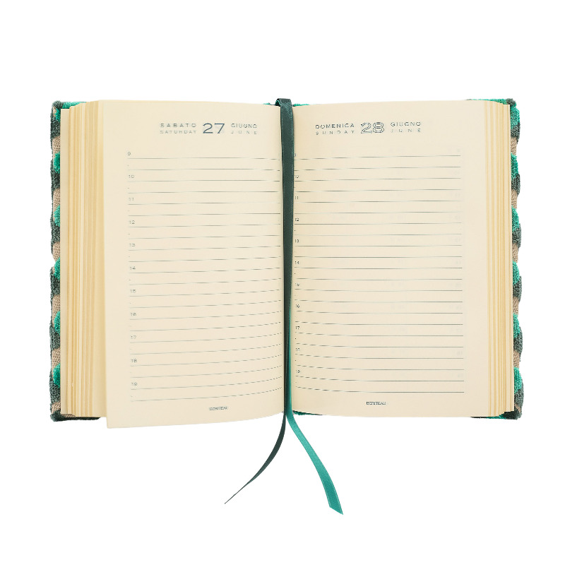 Agenda 12 mesi giornaliera rivestita in velluto fantasia.