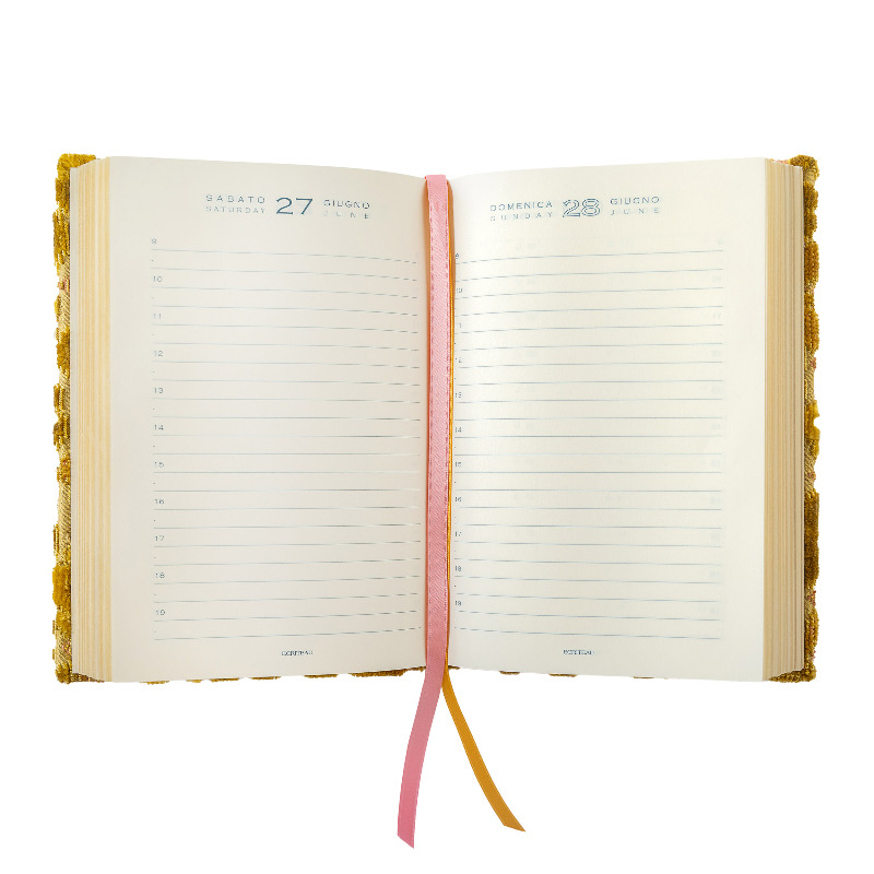 Agenda 12 mesi giornaliera rivestita in velluto fantasia.
