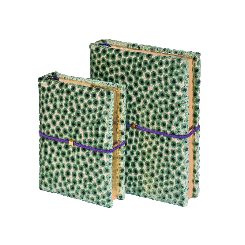 Agenda 12 mesi giornaliera rivestita in velluto fantasia.