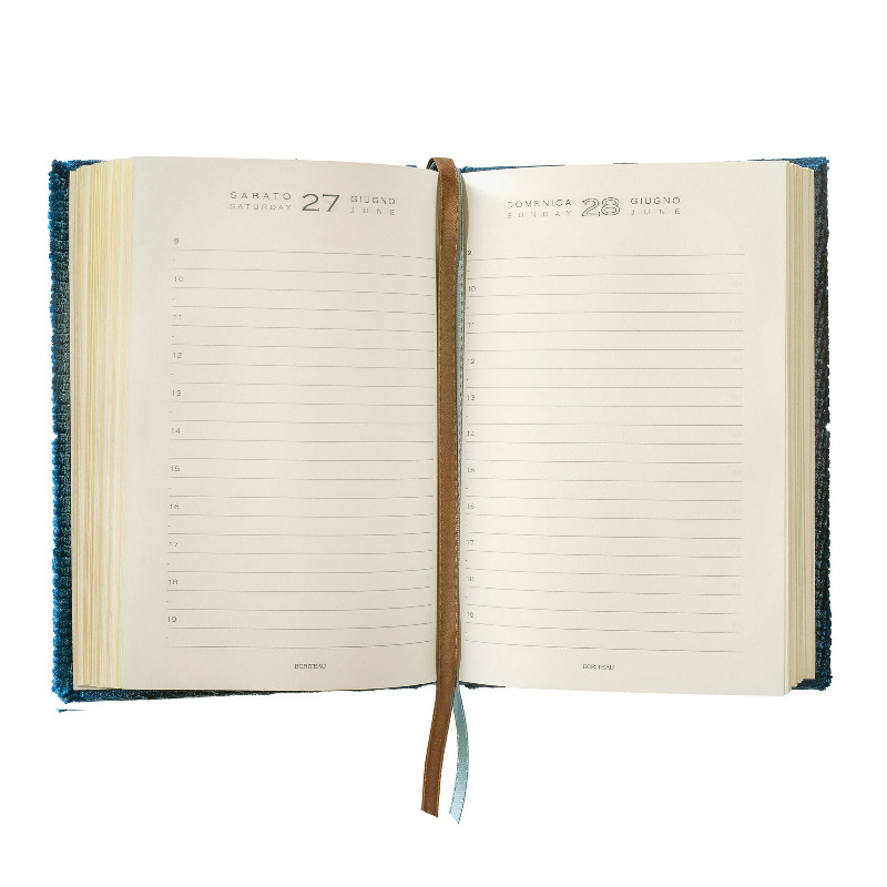 Agenda 12 mesi giornaliera rivestita in velluto.