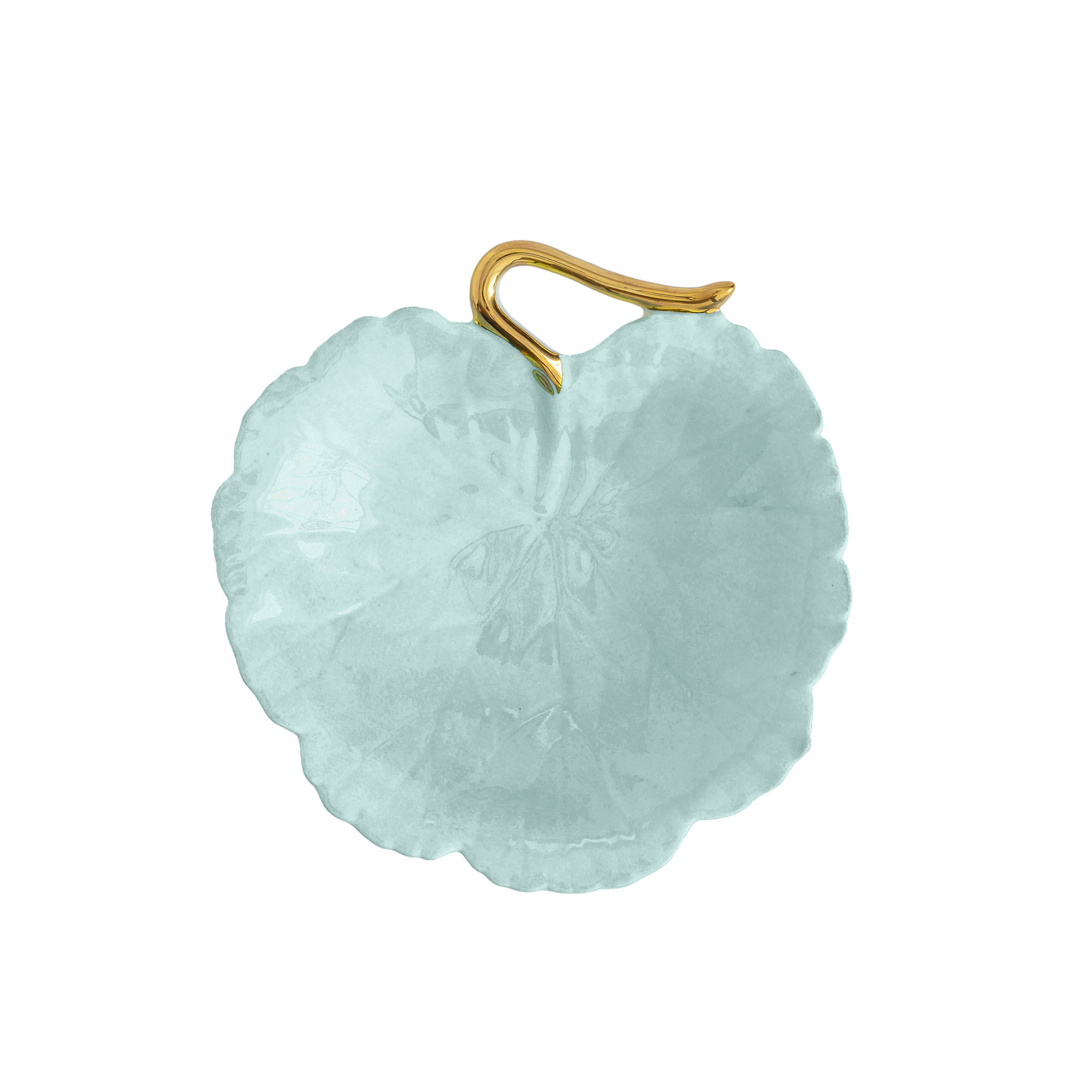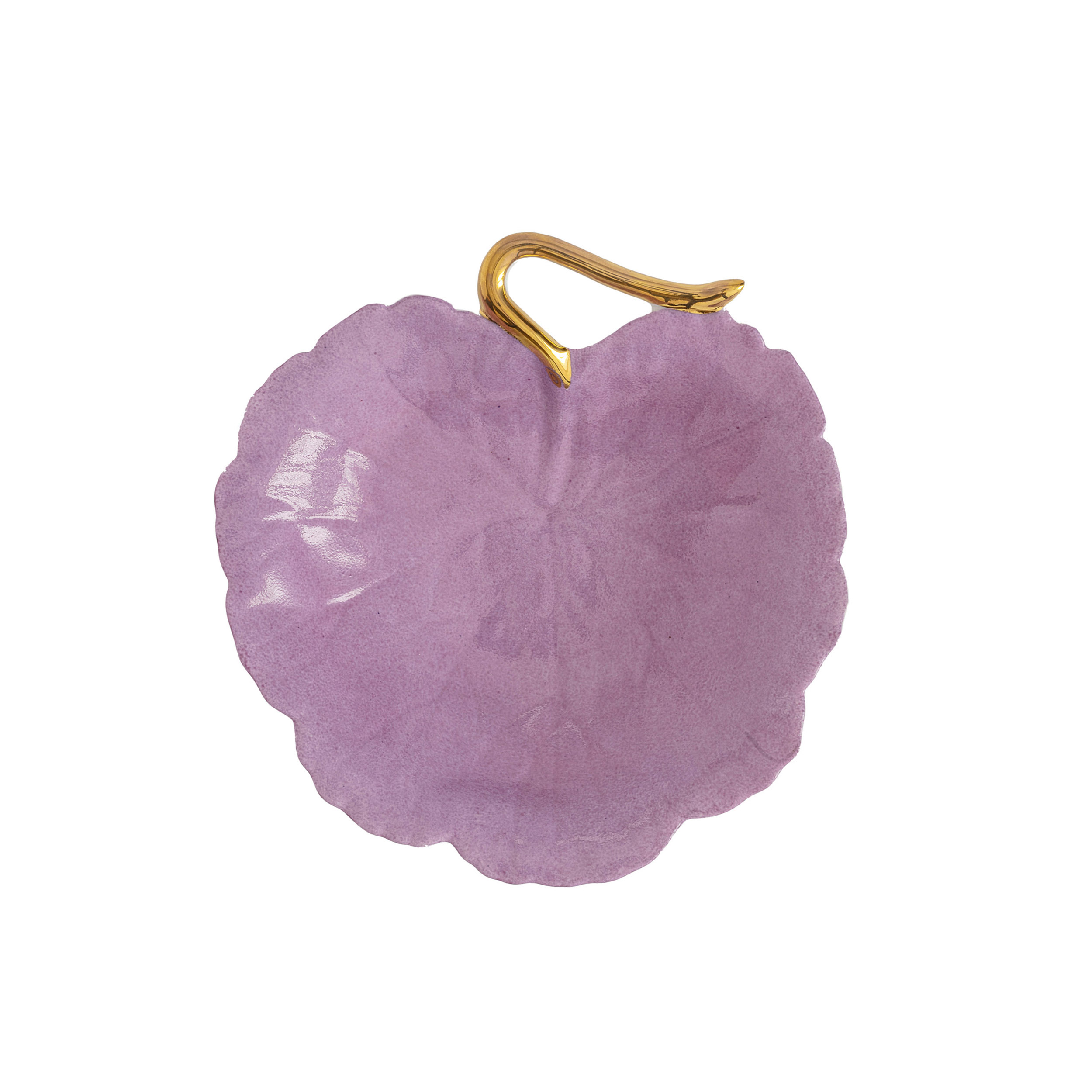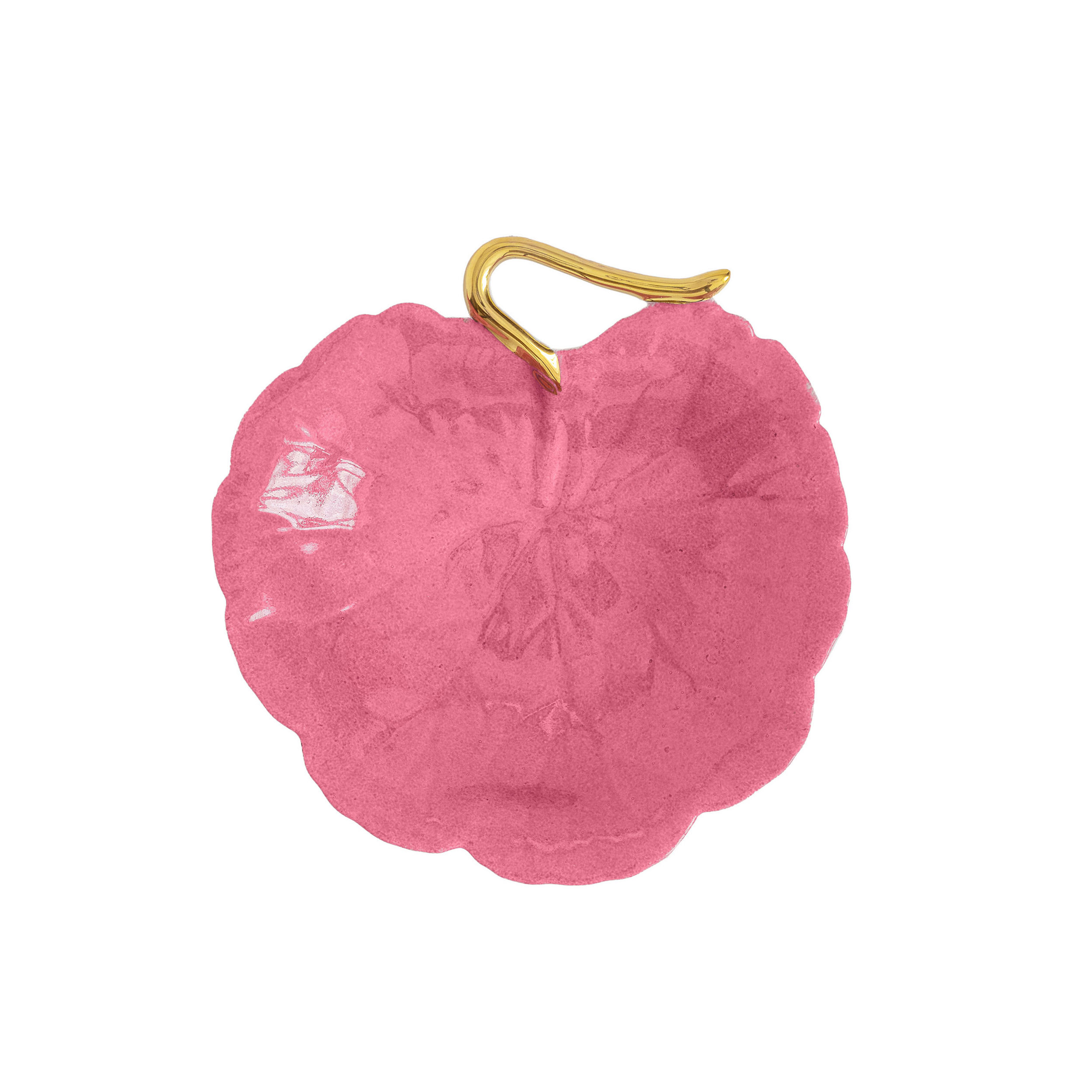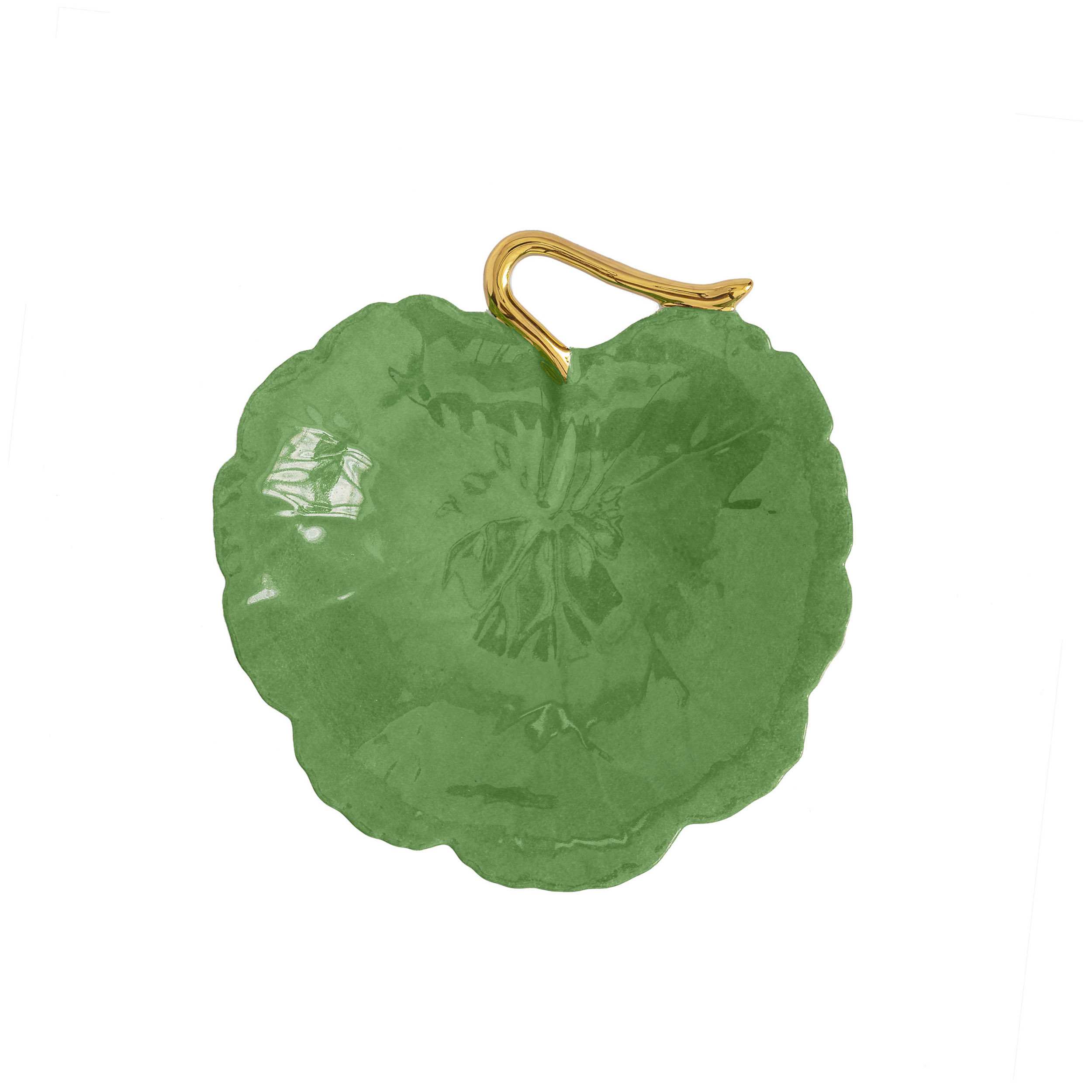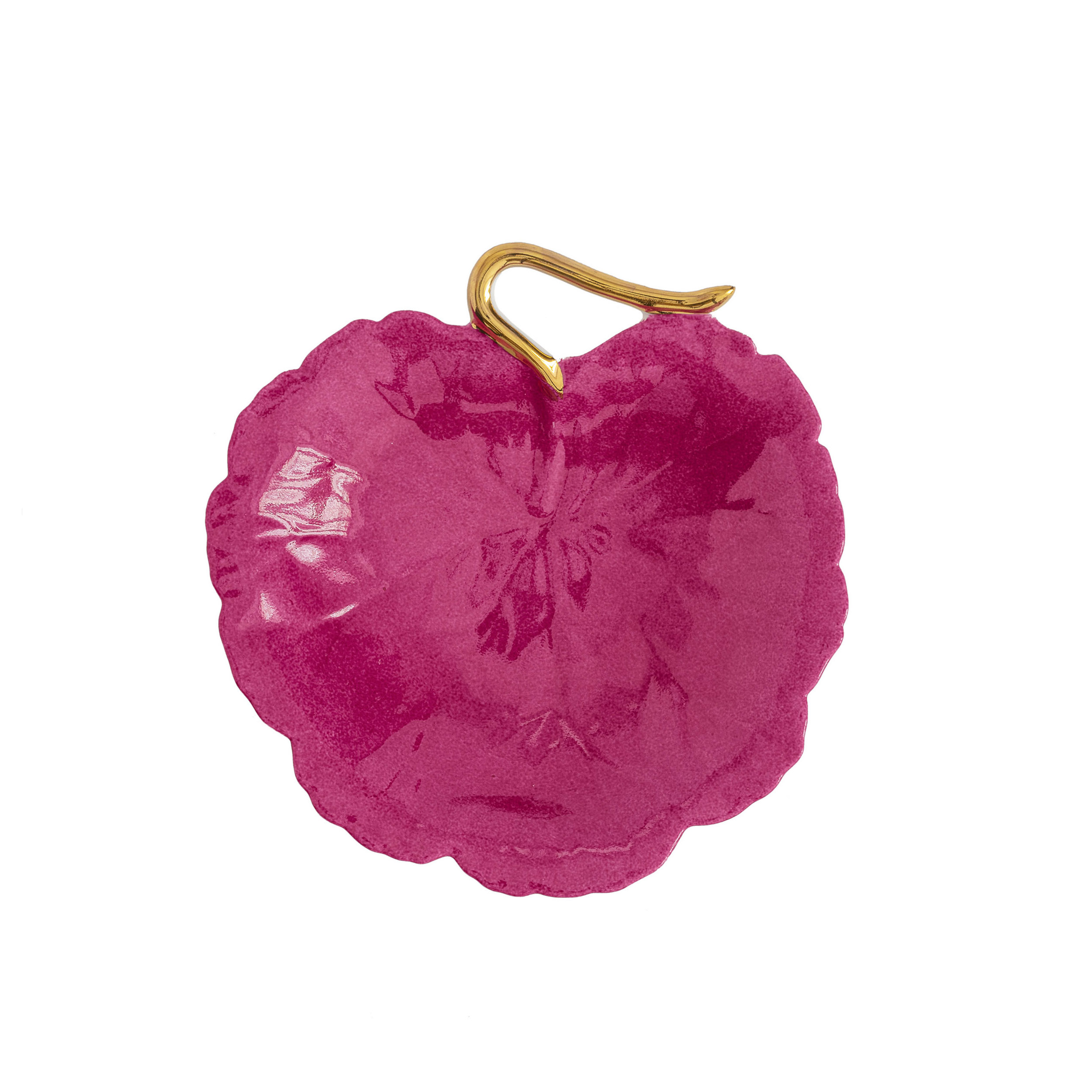 Foglia geranio in porcellana di Limoges decorata a mano con decoro in oro zecchino.