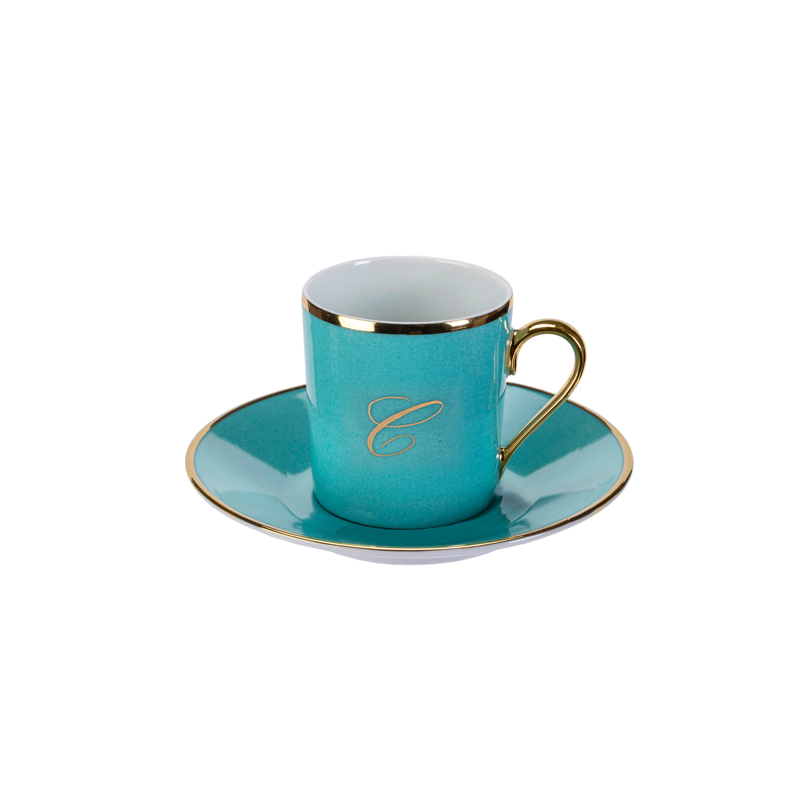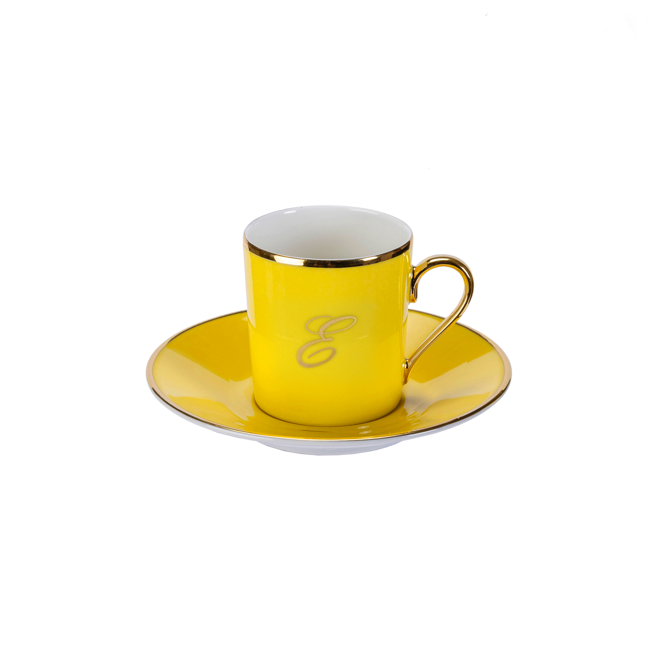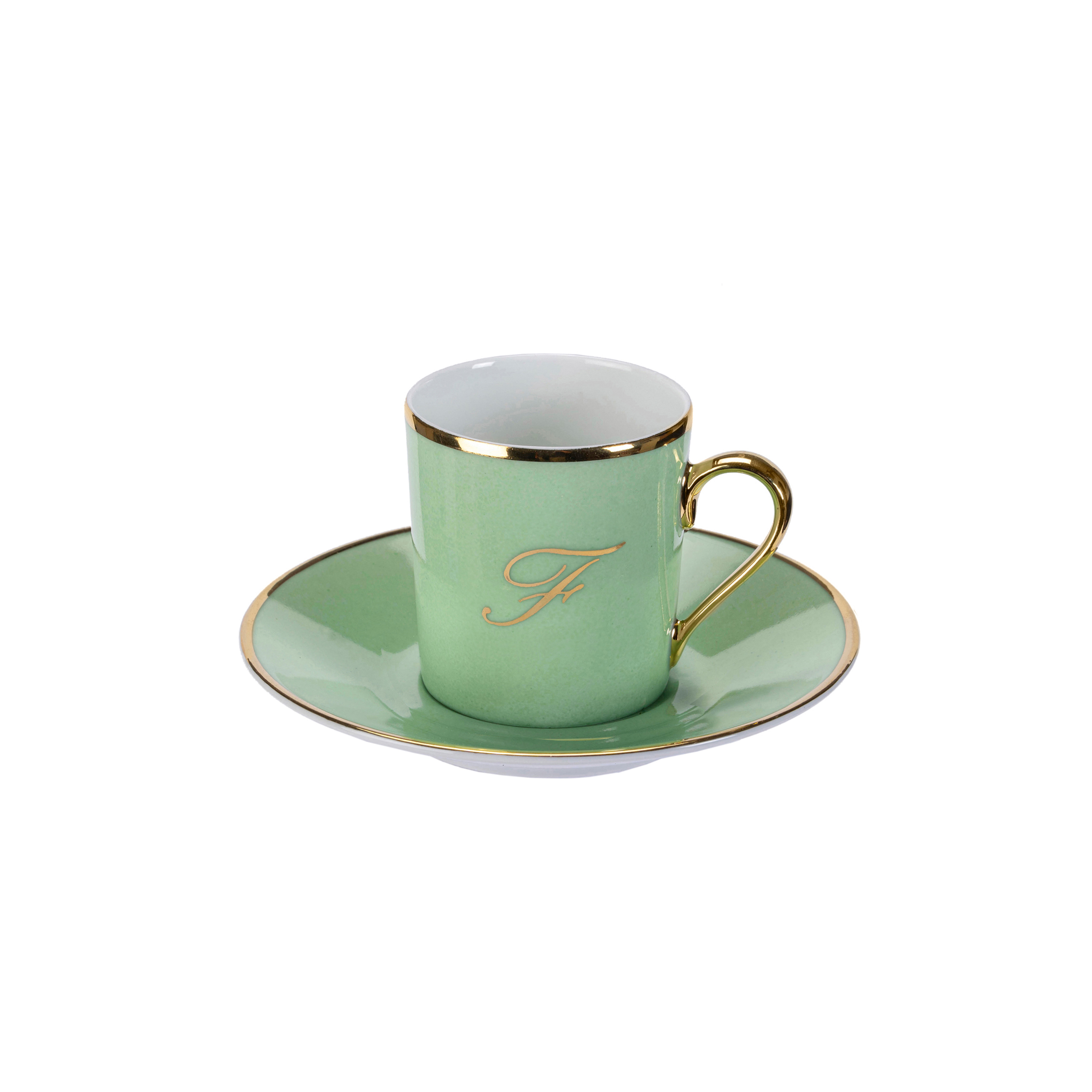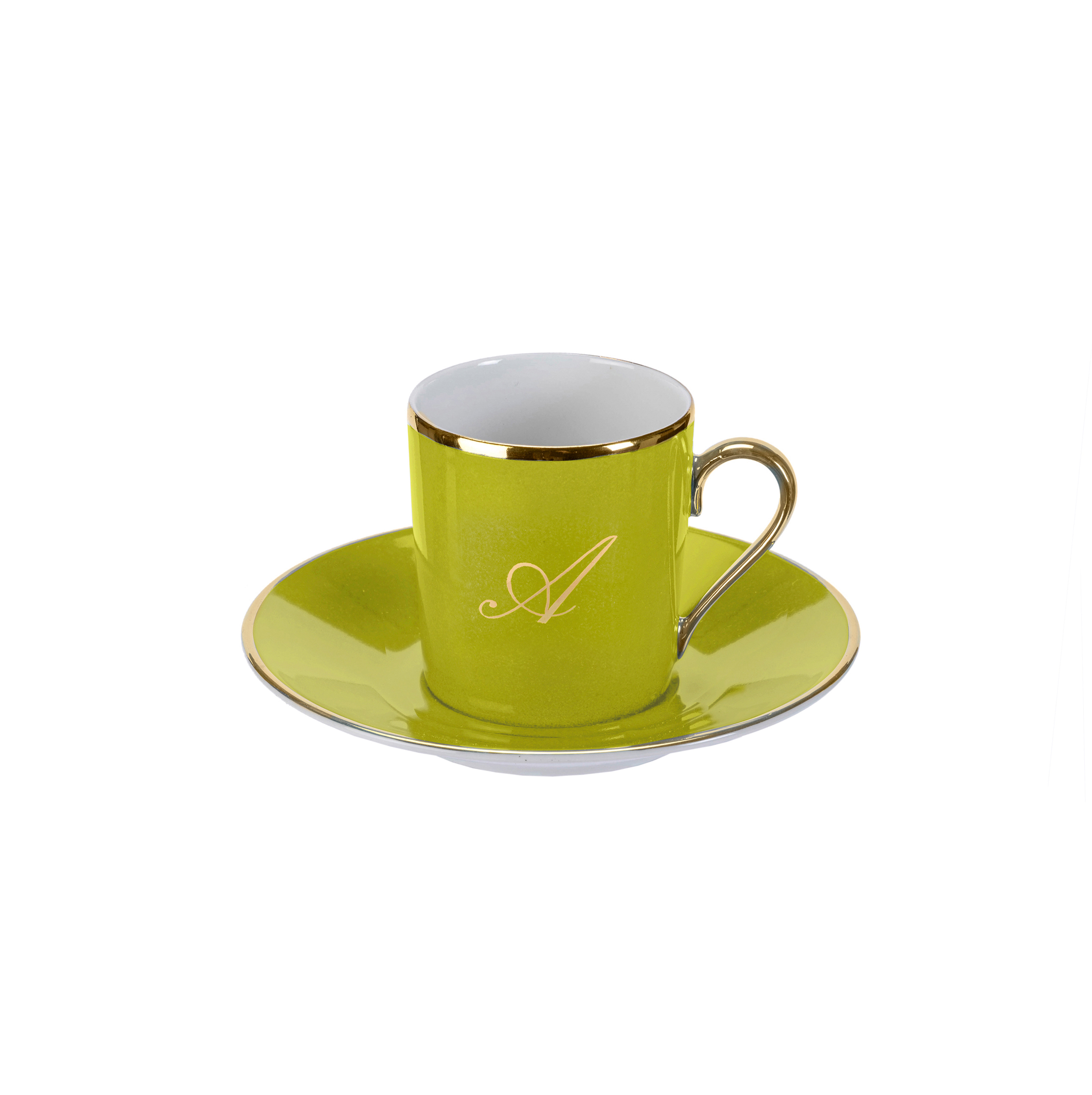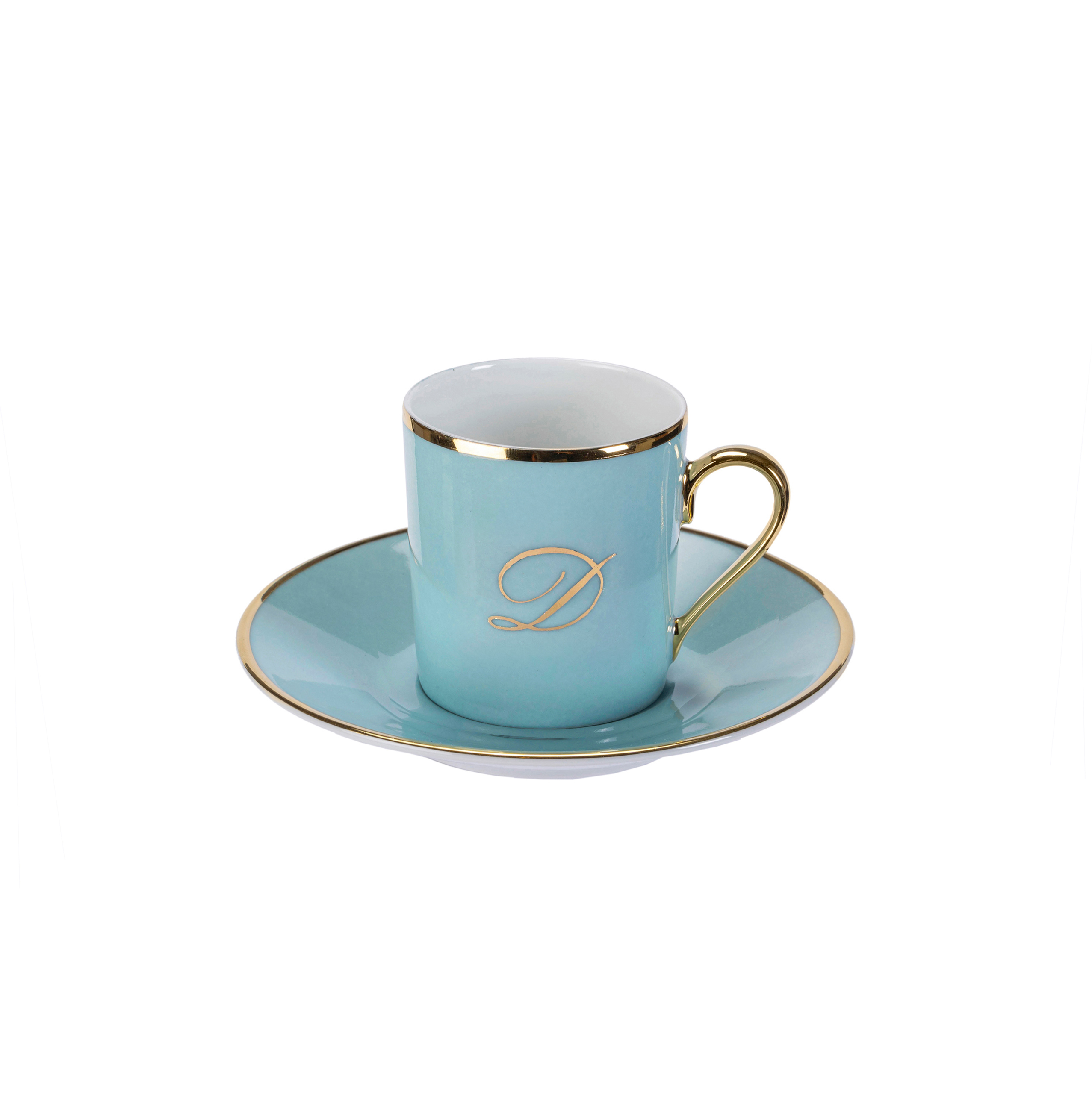 Tazzina caffè in porcellana di Limoges decorata a mano con bordo e iniziale oro zecchino.